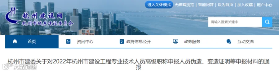 3月16日,杭州市建设委发布《关于对2022年杭州市建设工程专业技术人员高级职称申报人员伪造、变造证明等申报材料的通报》。