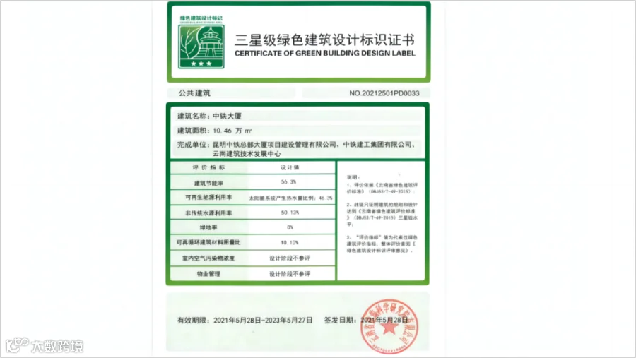 获云南省“三星级绿色建筑设计标识证书”