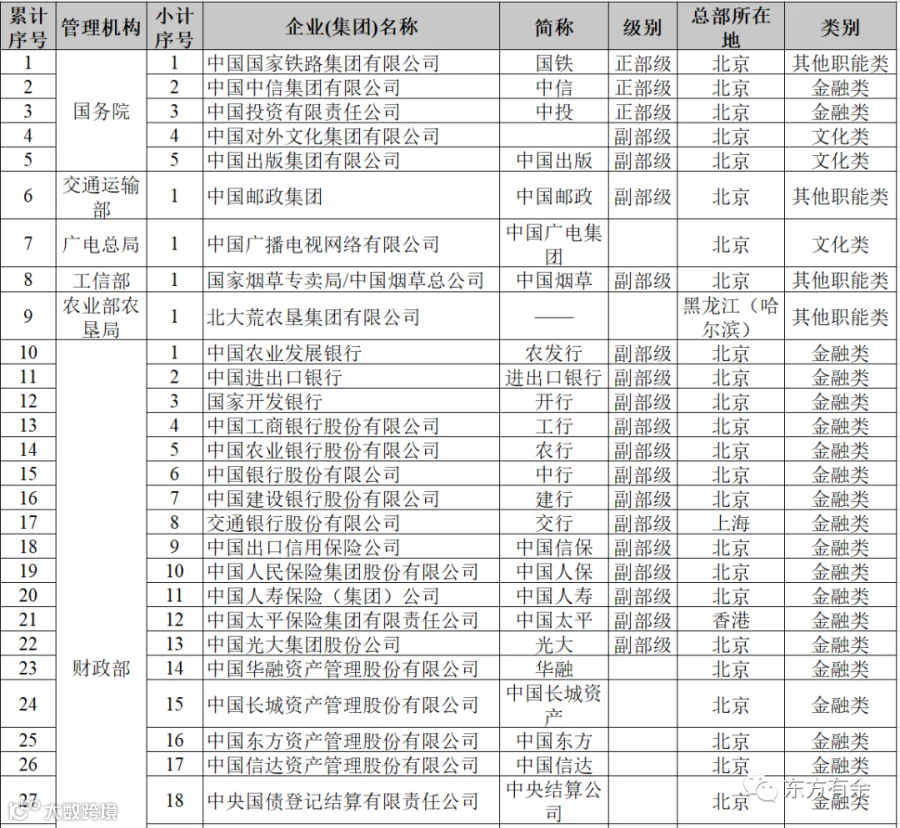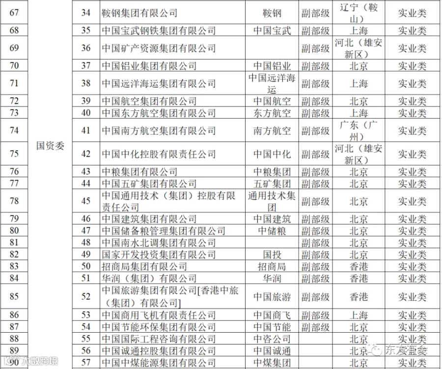 一、131家央企名录