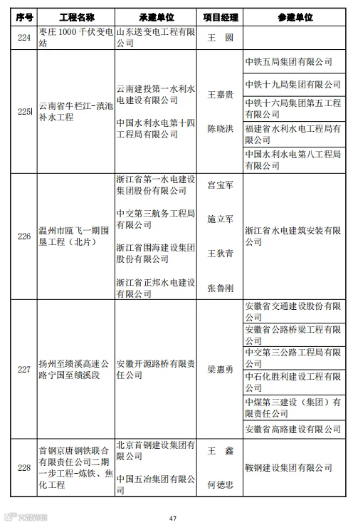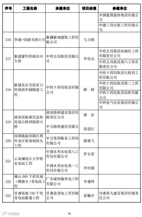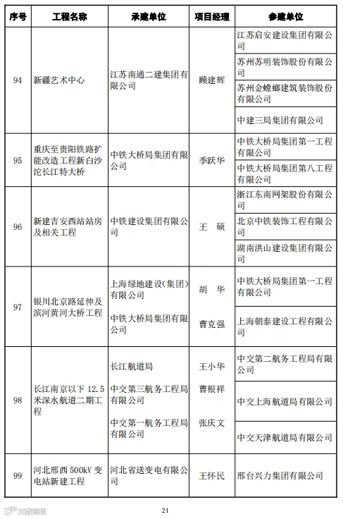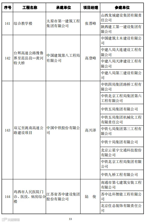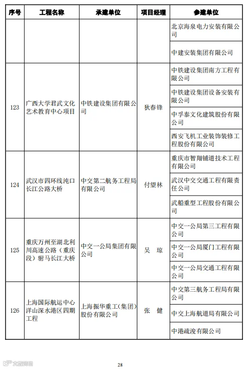 本次246项鲁班奖工程中路桥项目有29项,分别是:
