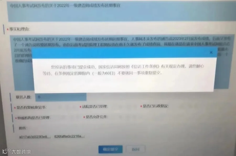 一位心急的考生将2022年一建成绩的相关事宜举报到了国家信访局,不得不说,这波操作....