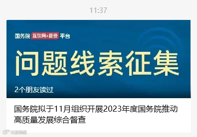 关于2023年度国务院推动高质量发展综合督查征集问题线索的公告