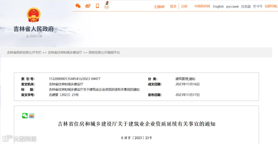 (二)省厅及长春市建委、延边州住建局核发的省级权限审批建筑业企业资质,证书有效期于2023年12月31日前届满的,统一自动延续至2024年6月30日。