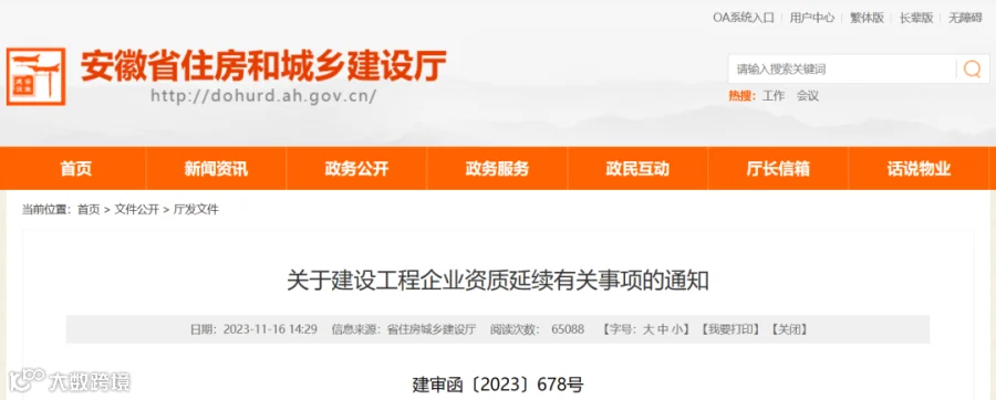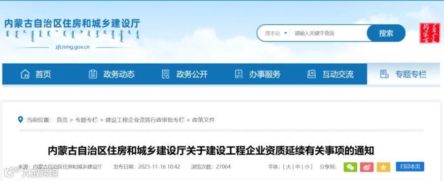 11月16、17日,吉林、安徽、广西、内蒙古四省住建厅发布关于建设工程企业资质延续有关事项的通知。其中: