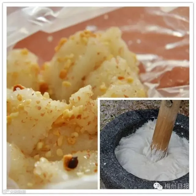 蕉岭人有打糍粑的传统,手工打的比较有韧性,好吃,但在梅城街头已难寻手工糍粑了,刚打出来的糍粑,有股浓郁的米香,这是家乡淳淳的味道…