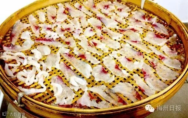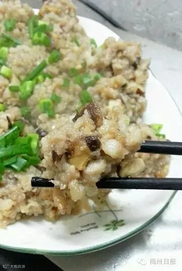 梅县松口鱼散粉,因其将鱼肉剁成末伴以米粉炒制而得名。鱼散粉的鱼末香再配上客家人自己酿的酒糟,趁热来一盘,咸香的客家风味,回味!
