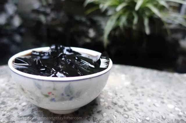 潮汕人把黑凉粉称作草粿,街边呆着草笠的伯伯吆喝着“卖豆花哦,卖草粿哦~”是潮汕人从小的美食记忆,草粿上面撒上红糖,甜甜的,味道赛过龟苓膏,绝对是解暑必备甜品。