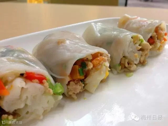 晚上九点一过,就是梅州人的宵夜时间了,米香浓郁的皮,包裹着肉菜豆干等荤素菜,一口咬下去,回味无穷。虽是清淡平常的味道,却有一种贴心温暖的感觉。
