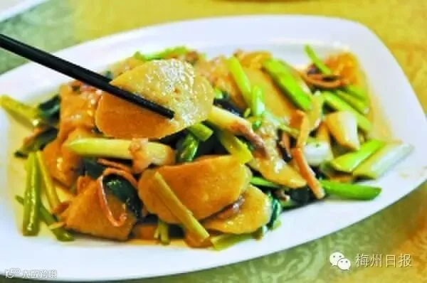 如果上午晚起床的亲,不想吃太多又想垫垫肚子,梅城街头来一份味酵粄就刚刚好!当天新鲜的味酵粄,无论是加上黄糖熬制的“红味”还是旺火炒食,客家特有碱水香和米香,韧劲十足,很是弹牙!