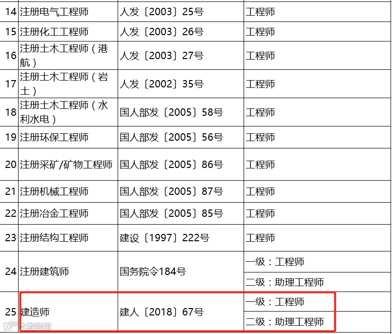 27省市(广东、北京、天津、山西、辽宁、黑龙江、上海、江苏、浙江、安徽、福建、山东、湖北、湖南、广西、海南、重庆、四川、贵州、云南、西藏、陕西、青海、江西、宁夏、河北、新疆)明确:一建对应工程师职称,二建对应助理工程师职称。