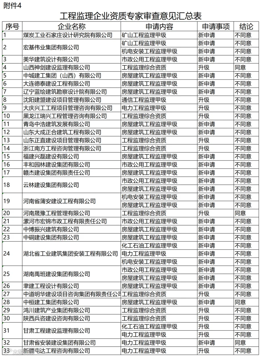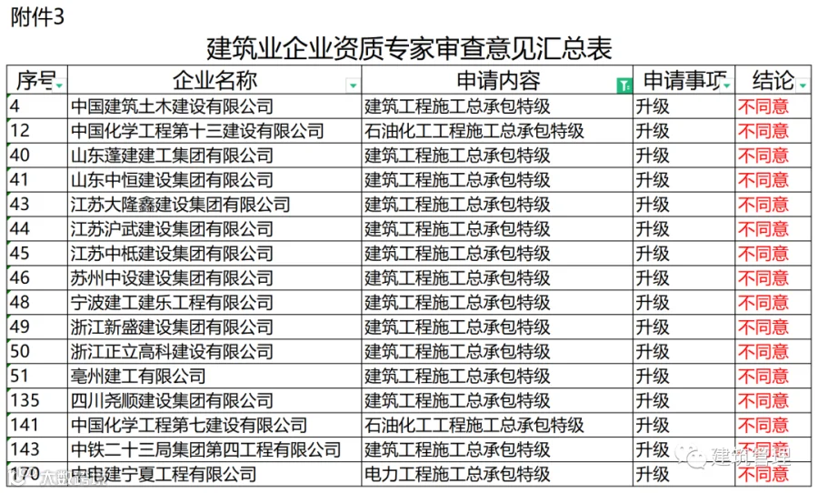 刚刚,住建部发布《关于建设工程企业资质专家审查意见的公示》,16家申请特级资质,全部不同意!