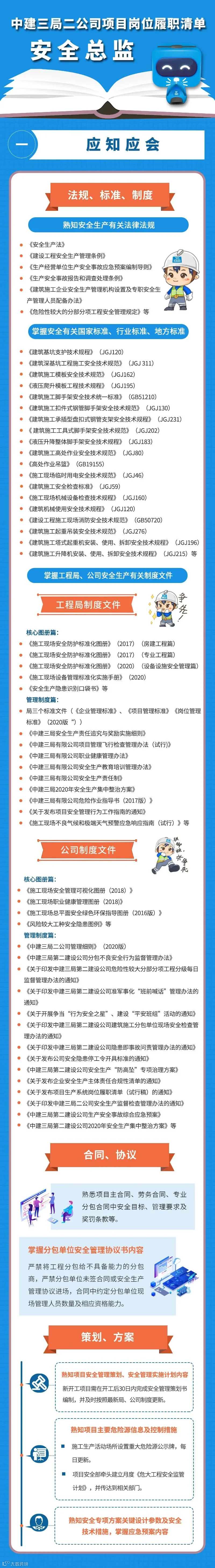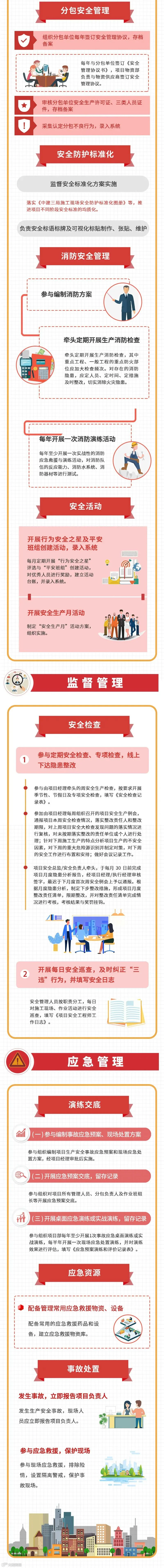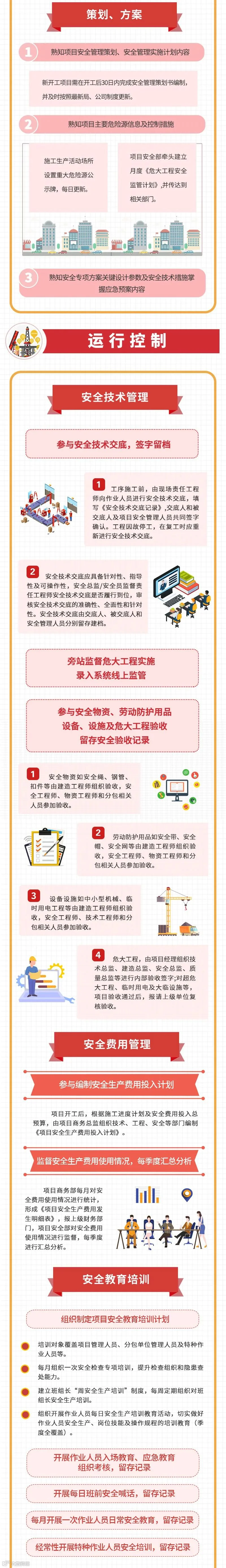 项目部各岗位工作该怎么干?中建三局二公司为规范项目生产系统岗位管理责任、增强项目员工履职尽责意识、提升项目管理水平,对①项目经理②建造总监③安全总监④质量工程师⑤专业工程师⑥安全工程师六项管理岗位的工作内容与管理职责细化明确,推出《中建三局二公司项目生产系统岗位履职清单》,推荐大家对照学习。