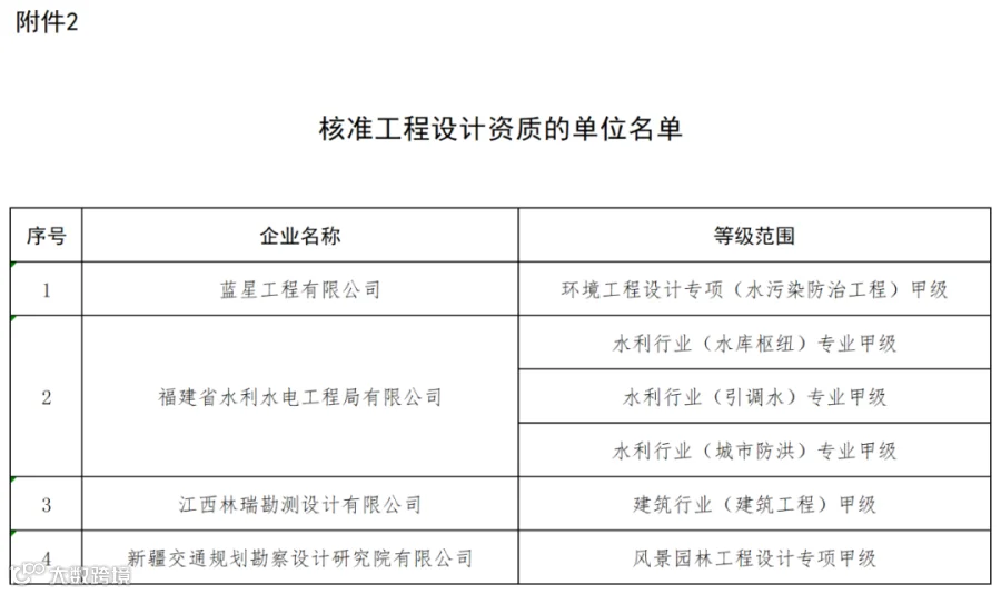 2.核准工程设计资质的单位名单