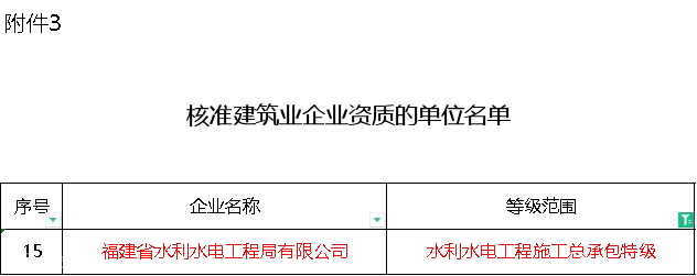 3.核准建筑业企业资质的单位名单
