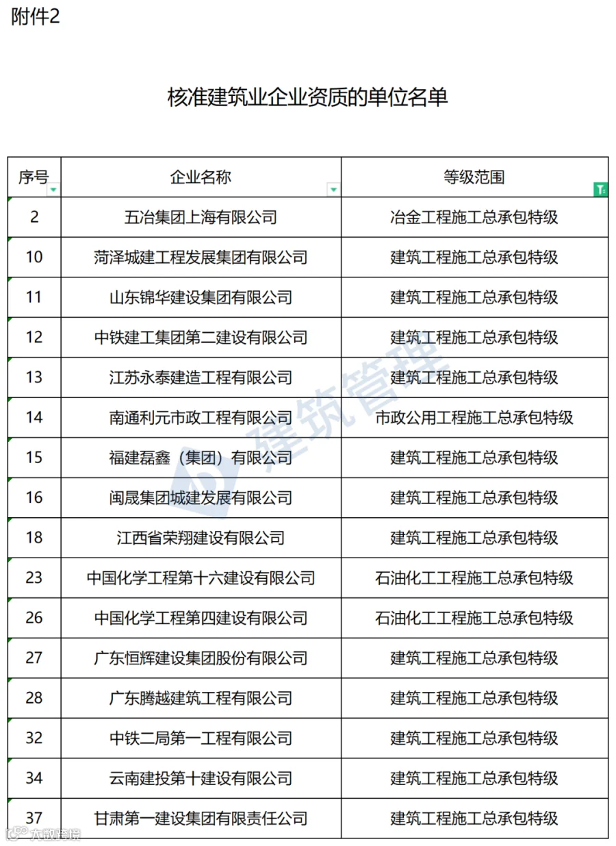第二批全部名单:住建部:新增5家特级企业!都是建筑工程