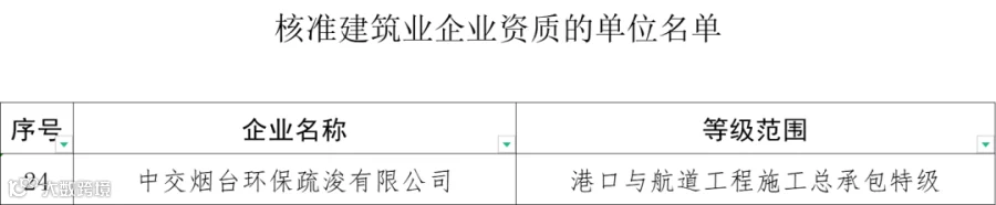 7月30日,住建部发布《关于核准2023年度第七批建设工程企业资质名单的公告》,1家建企成功晋升港口与航道工程施工总承包特级。