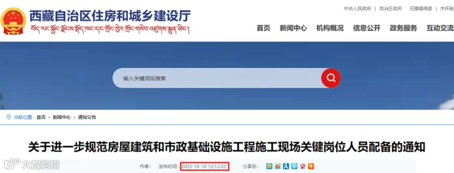 刚刚,西藏住建厅发布《关于进一步规范房屋建筑和市政基础设施工程施工现场关键岗位人员配备的通知》。