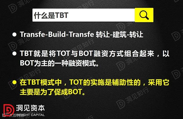TBT融资模式中,政府通过TOT一次性融得资金后,会在BOT项目中入股,甚至主导项目的实施。这样,其他投资人就不用担心财务上和政府履行合同上的问题,而且有了政府的强力参与,又有了资金的保证,就大大增加了项目实施的成功率。