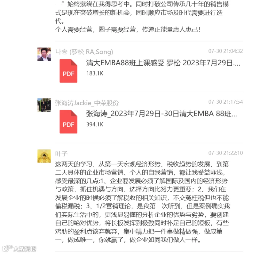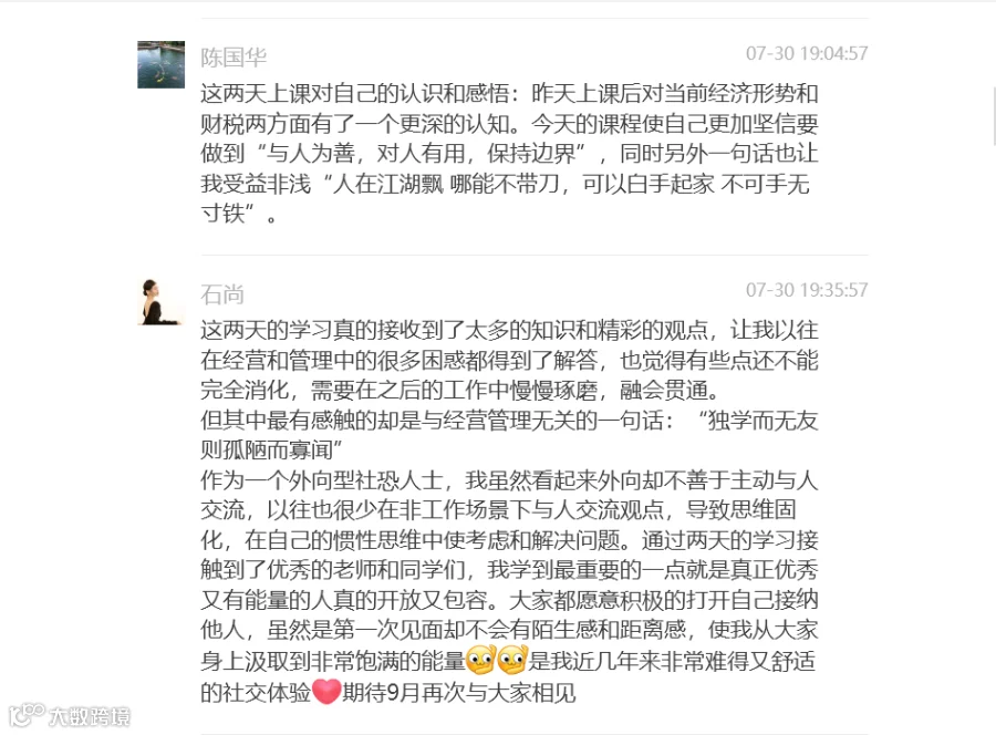 独学而无友,则孤陋而寡闻。两天的课程结束后,同学们学习热情不减,继续在微信群内分享自己的心得体会,交流之热烈,更是凌晨2点还在分享学习收获。
