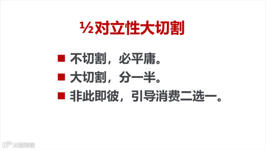 陈同学:通过学习的切割大营销的课程,路老师结合经典案例,深入浅出,几点感悟:1)营销的核心工作是将同样的产品卖出不同。2)品牌的世界没有真相,只有认知。3)切割需要寻找差异点,分清你和别人的不同。细分是在做第N+1件事情,而切割是在做二分之一的事情,结果是完全不同。切割是在细分基础上的板块整合。简单来说,切割更像是重新洗牌,建立自己的阵地堡垒,而细分只是在原来的基础上进行更细致的分类。4)让别人能够直观的区分你与其他企业的显著特征,企业、产品都要有属于自己的身份标签或者关键词,让别人第一时间明白你。