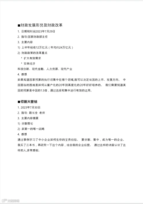 王同学:在张老师的细致讲解下,全面了解到国家财税收入及支出的主要项目,也因此认识到国家财税政策与企业、与民生、与自己的关系是如此密切;从政府对于各种税收改革的实践和计划上,也可以看到政府对于企业发展与民生改善的用心;怎样把握国家财税变化与倾向,抓住其中契机助力企业本身,是企业家的重要命题。