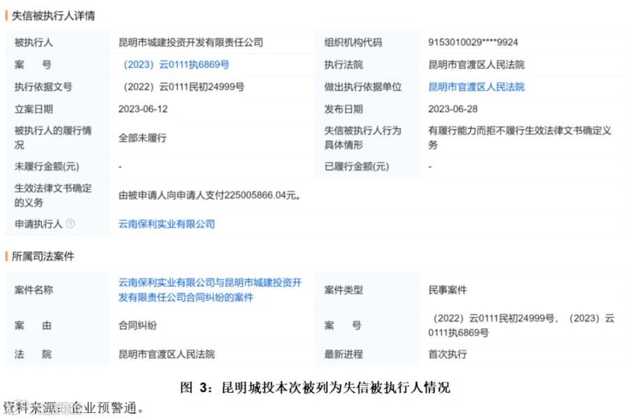 2023年6月28日,昆明城投被列入失信被执行人名单。