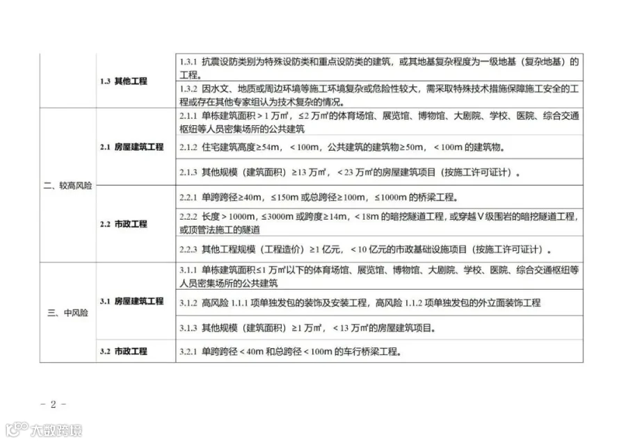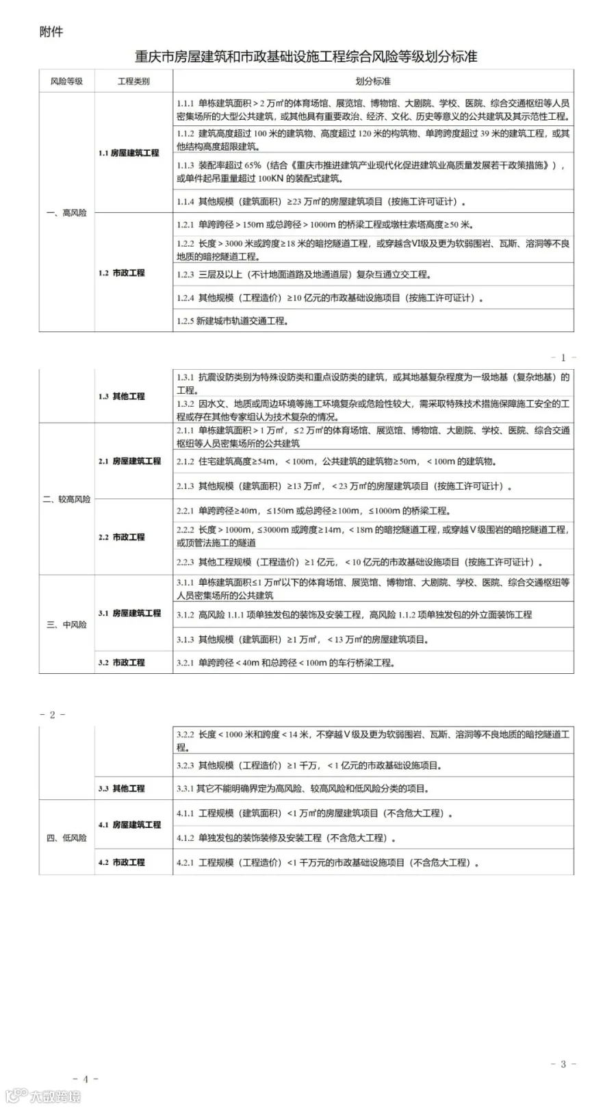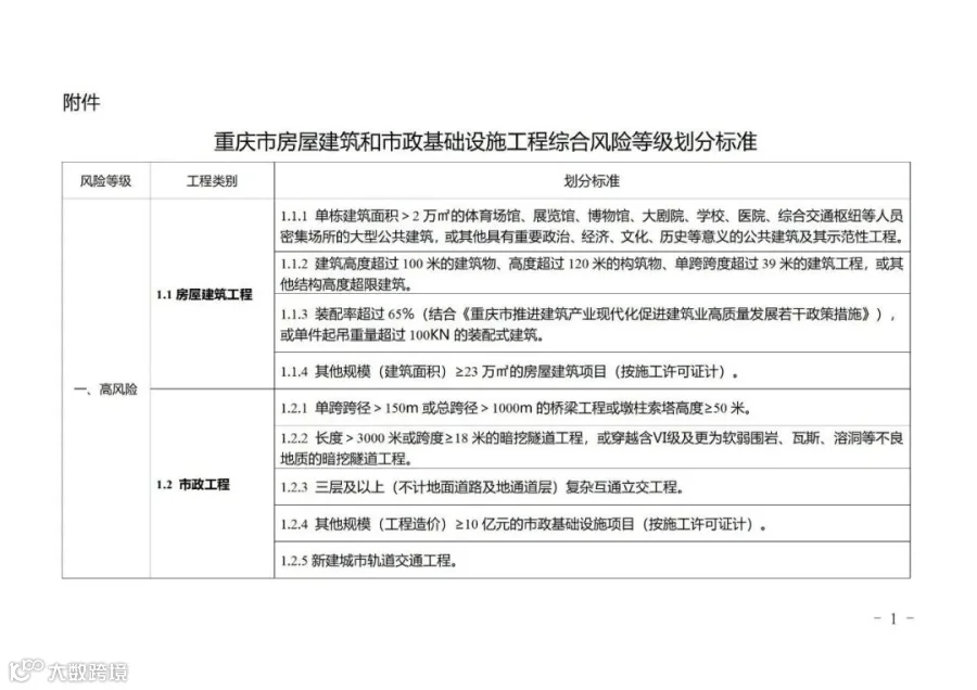 附件:重庆市房屋建筑和市政基础设施工程综合风险等级划分标准