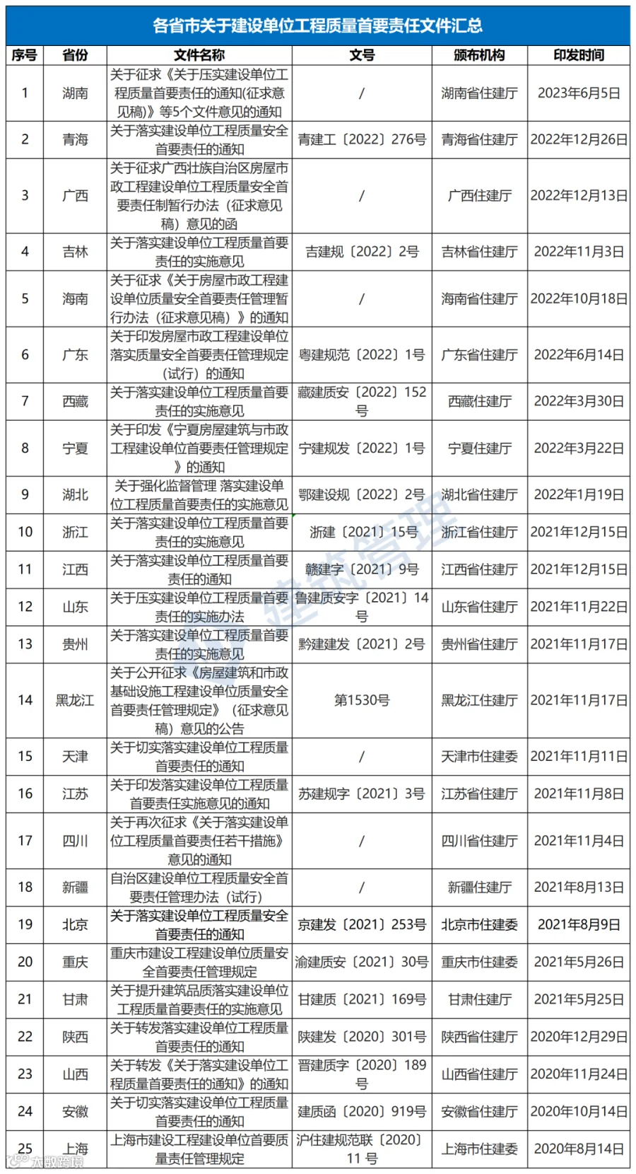 2020年9月23日,住建部发布《关于落实建设单位工程质量首要责任的通知》,严格落实建设单位工程质量首要责任。