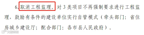 随后,多个省份、地市针对部分项目建设,明确可以不实行监理。