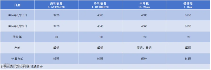 据四川省钢材流通协会对本周成都现货市场监测显示:热轧板卷较上周价格上涨50元/吨;冷轧板卷较上周价格下跌20元/吨;中厚板较上周价格下跌20元/吨;镀锌卷较上周价格下跌20元/吨。