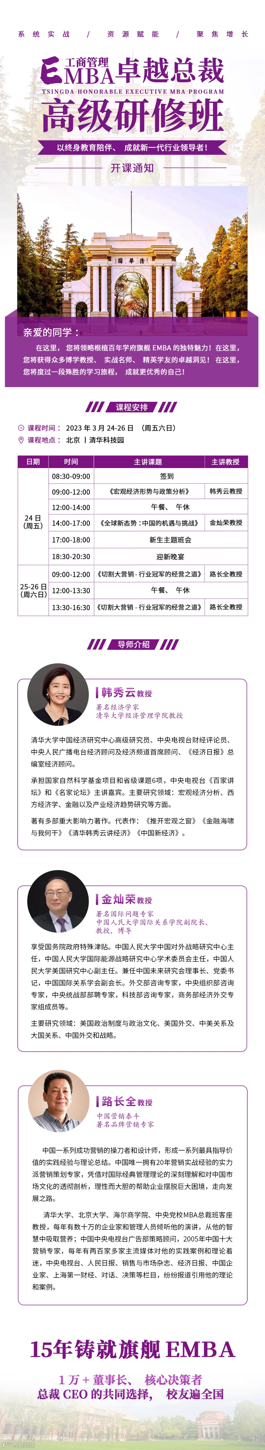 欢迎加入:清大·工商管理(EMBA)总裁高级研修班