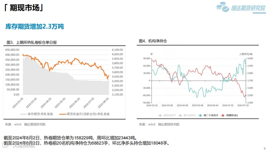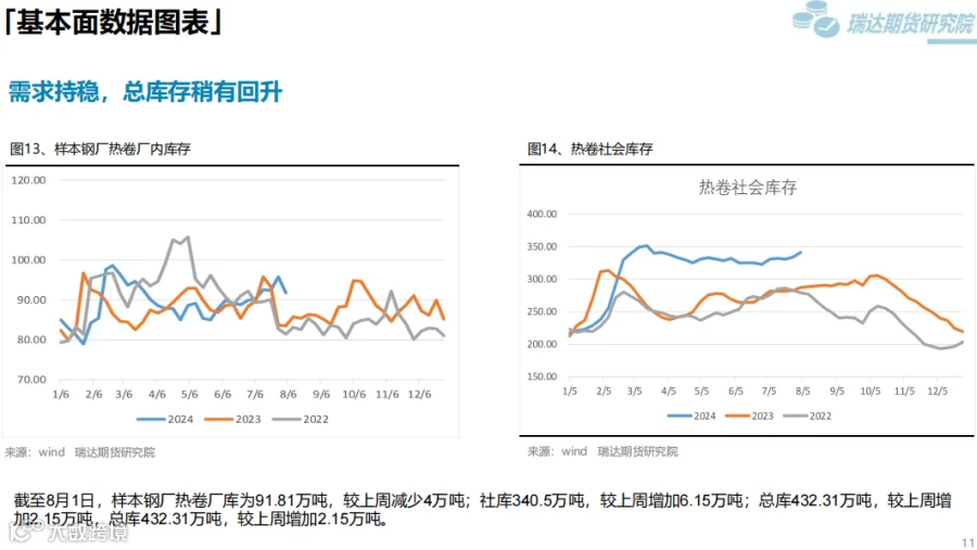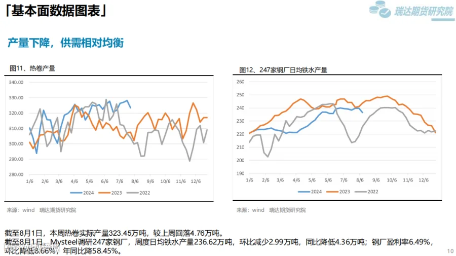 供需方面,供需双弱,库存稍有回升,后期还需关注越南反倾销情况,对热卷出口需求的影响。成本利润方面,钢厂盈利率6.49%,环比降低8.66%,年同比降58.45%。据Mysteel前期调研,目前盈利的钢厂主要有三个特点:1、自身产品附加值高;2、有自己的铁矿或煤矿山;3、原料库存天数极低,随采随用,且非建材企业。