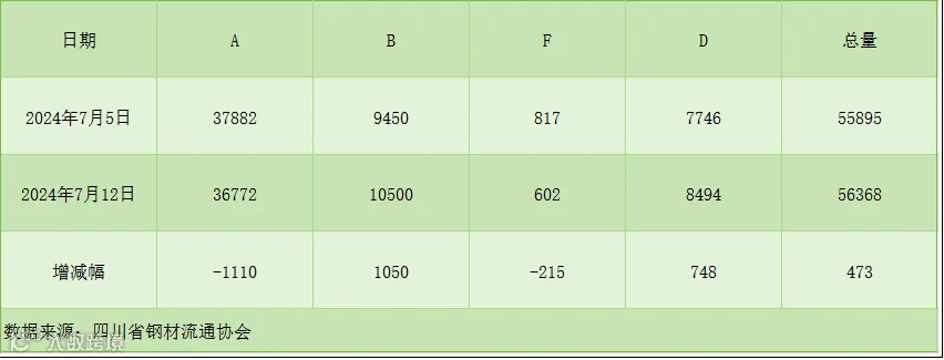 以上表单中的数据完全由川钢协信息统计部人员客观采集自相关钢厂、库房和贸易企业,川钢协力求数据及内容的准确、客观,但不能保证其完整性或准确性;本数据简报仅供浏览者参考,并不构成建议,川钢协不对该数据、简报及使用该数据和简报所导致的结果承担责任。