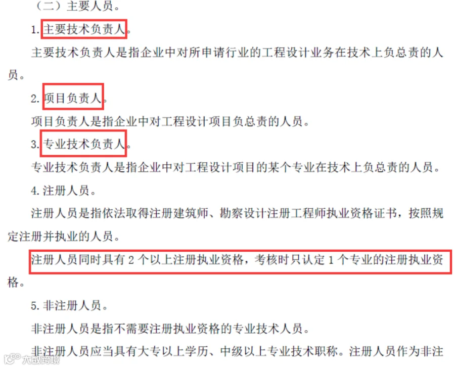 首先在主要技术负责人(貌似就是总工了)设置上,对于高级职称同等重视,这时候注册证书和高工两者2选1即可,注意只是这里可以,两者并不对等,其他地方不一定行,所以最好的方式是2个都有,要啥有啥。其次在人员配置表中的人员,无论是注册师还是非注册师,都对业绩有要求,所以以后有没有业绩会成为一个重点,这里圈出来,要考!自己做过的项目记得让单位给你上报一下。