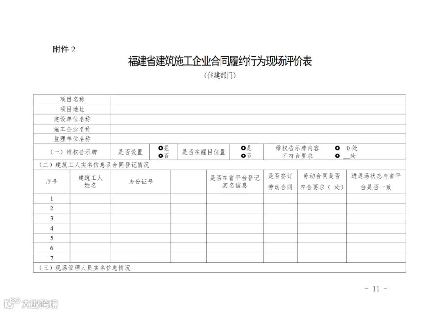 2. 建筑工人劳动合同签订情况、建筑工人及项目管理人员实名信息登记情况、“维权告示牌”设置情况等3项指标,由住建部门到施工现场评价。具体评价内容详见附件2。