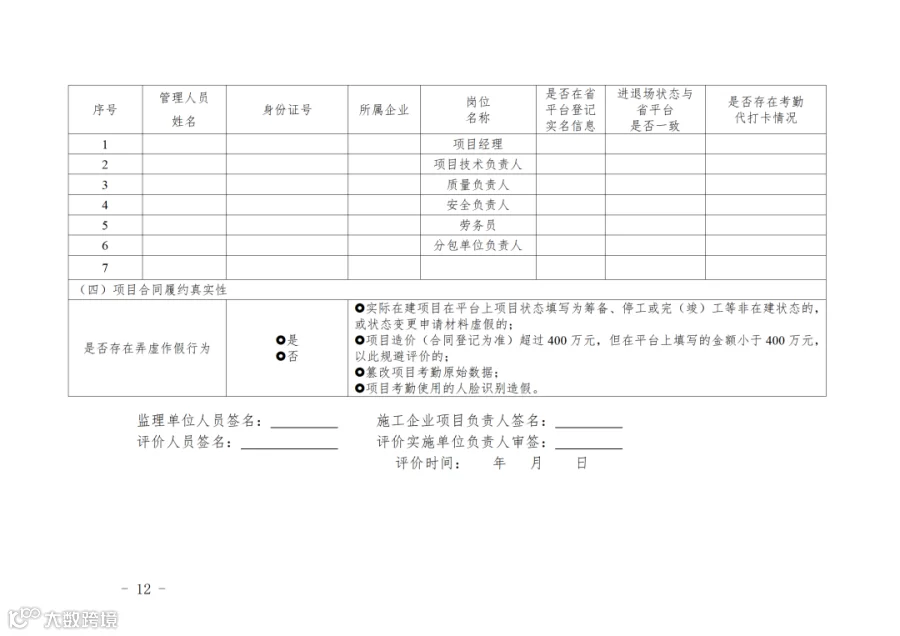 第十二条 评价实施单位定期通过平台对项目考勤数据真实性进行抽查,原则上每月每个项目应抽查一次。