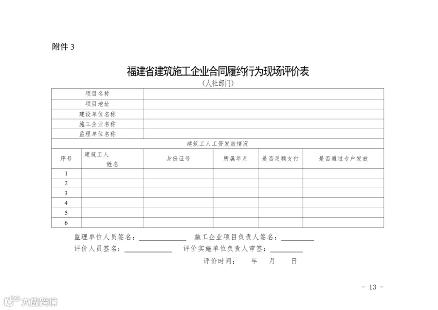 3. 农民工工资发放情况的指标由人社部门到施工现场评价。具体评价内容详见附件3。