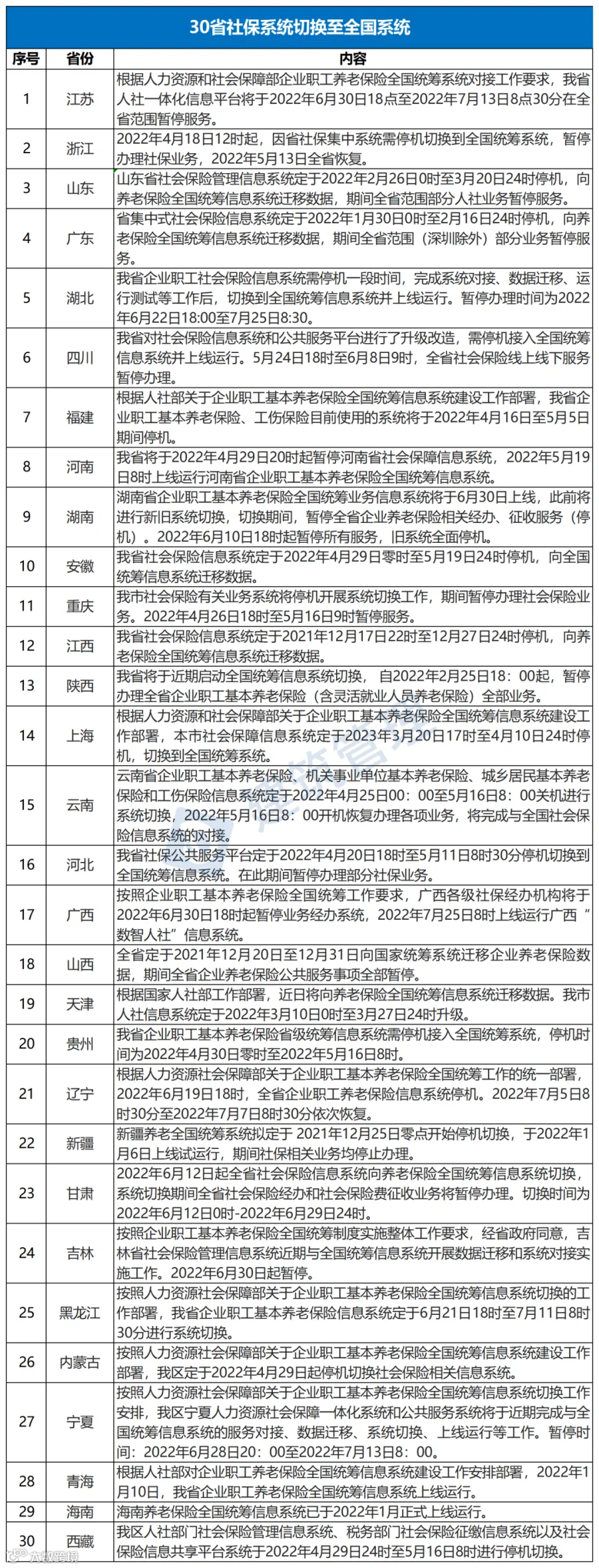 截至2023年3月,已有30个省发文,省社保公共服务平台切换到全国统筹信息系统。
