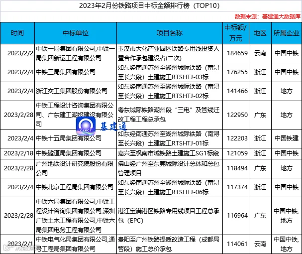 2 月铁路“标王”称号花落中国中铁