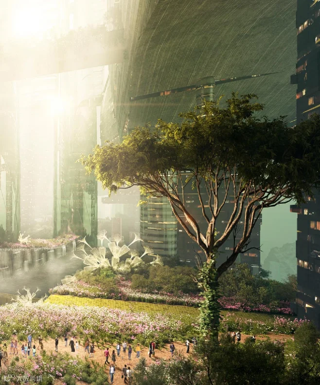 因此提供了一种新的城市规划设计方法。将城市功能垂直分层分布,让人们在三维空间(向上、向下或水平)中无缝出行 ,这一概念被称为零重力城市主义。