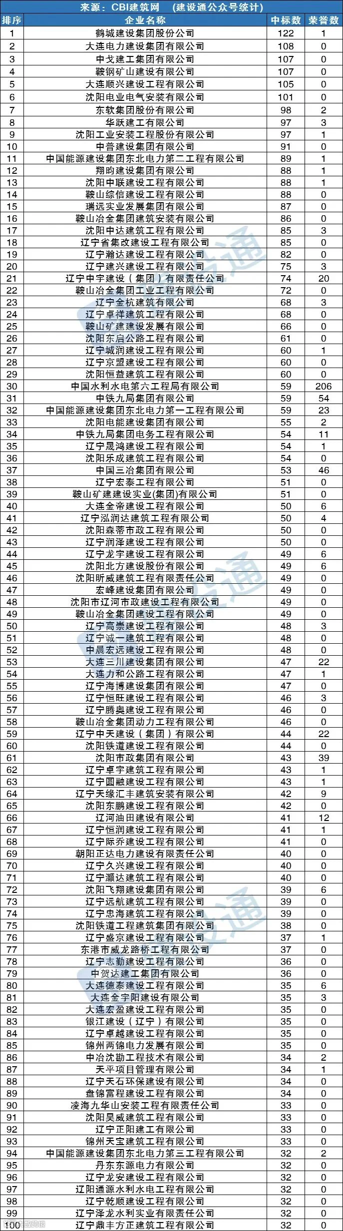 CBI建筑网综合报道:在2022年,辽宁建筑施工企业中标数量达34165项,同比(与去年同期)上升9.30%。其中,鹤城建设集团股份公司、大连电力建设集团有限公司、中戈建工集团有限公司分列中标数量排行榜前三位。