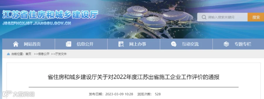 省住房和城乡建设厅关于对2022年度江苏出省施工企业工作评价的通报