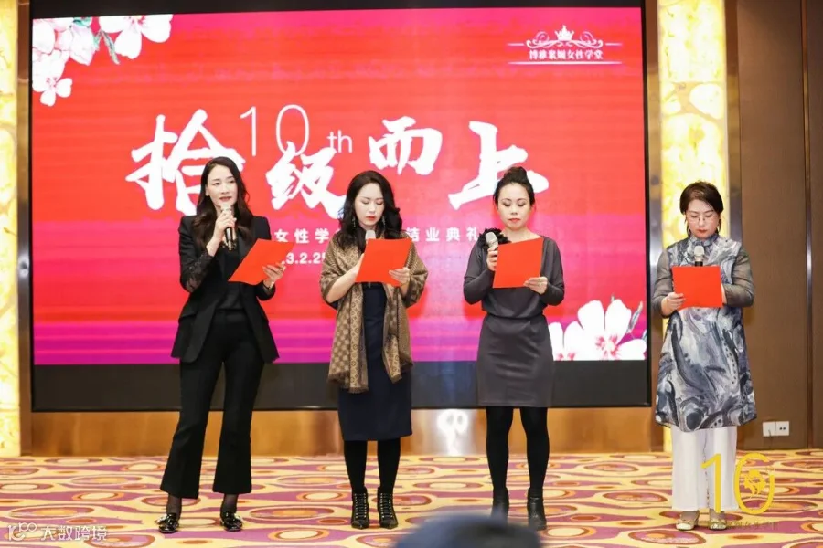 25日晚,“拾级而上”博雅聚娴女性学堂10班结业典礼由一场别具一格的红毯秀拉开序幕。