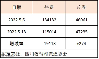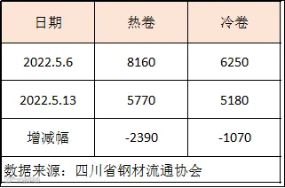 本周四川省钢材流通协会对样本钢厂关于板材出货量统计数据显示,热卷出货量5770吨,较上周减少2390吨。冷卷出货量5180吨,较上周减少1070吨。