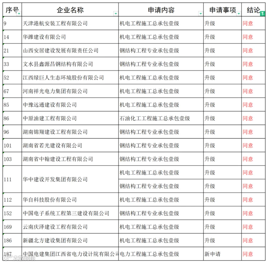时隔5天,9月5日,住建部又发布一批《关于建设工程企业资质专家审查意见的公示》(建办受理函〔2022〕7号),没有企业申请特级,同意18家企业升级(新申请)一级资质。