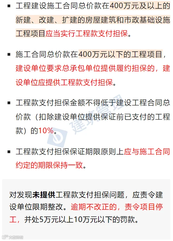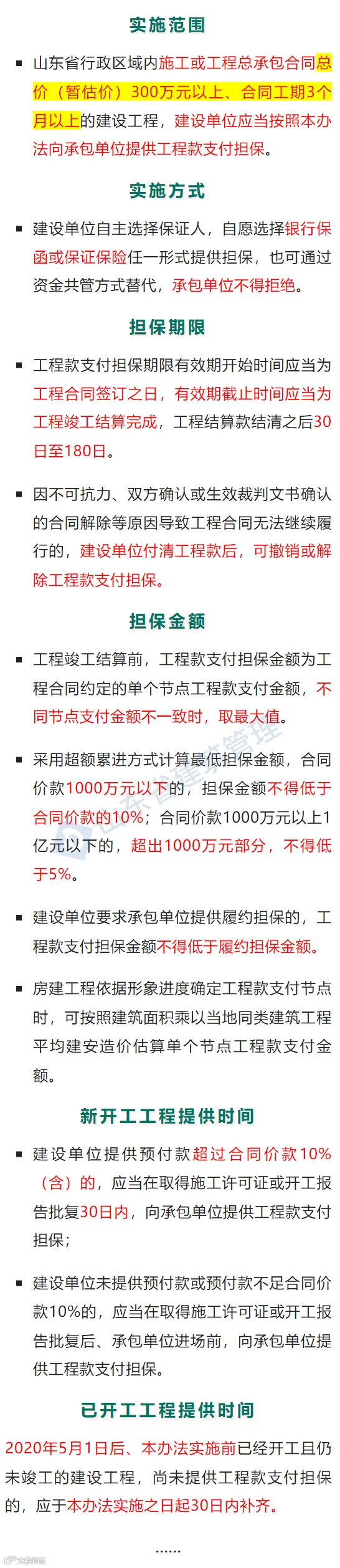 相关阅读:山东:300万元以上工程应提供工程款支付担保!已开工未提供的应在30日内补齐