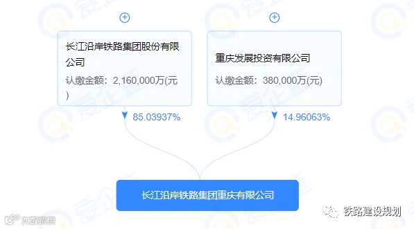 工商信息显示,长江沿岸铁路集团重庆有限公司有两大股东,分别为:长江沿岸铁路集团(持股85.04%)、重庆发展投资有限公司(持股14.96%)。