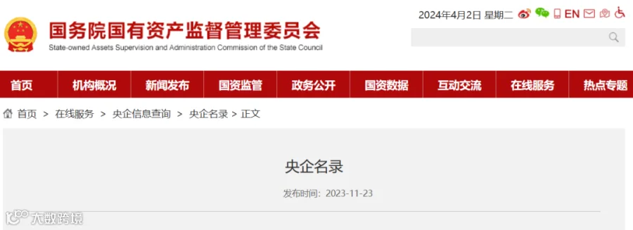 2023年11月23日,国务院国资委公布最新央企名录,华录集团已被从央企名录中移除,截至目前,全国共有97家央企。