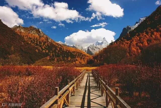 而秋天的稻城是炫丽多彩的,稻城外的红草地与黄色的万亩杨树林让人置身于色彩的海洋,与蓝天白云交相辉映,五彩斑斓的世界,让人眼花缭乱。