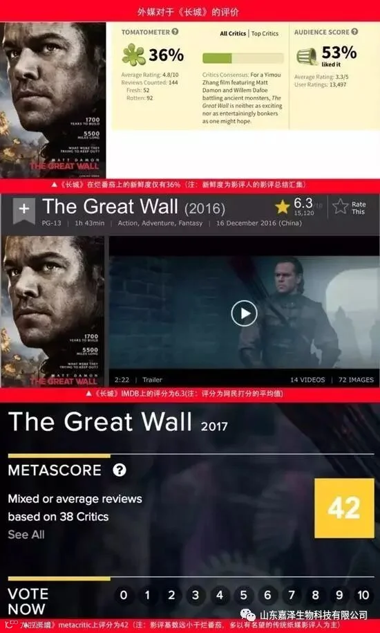 《长城》在北美遭遇的真正的挫败,不是票房,而是口碑。